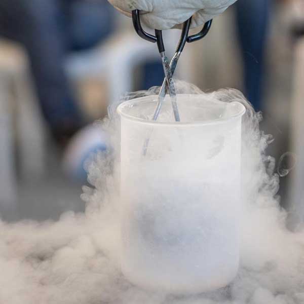 Explore physical reactions by freezing everyday objects with liquid nitrogen! Watch as balloons, flowers, and other objects undergo a physical change when exposed to extremely cold temperatures (-321° F to be exact). Be sure to stay for our grand finale as we create a simulated cloud, thunder and all.