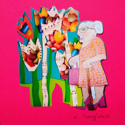 Based in Miami Beach for more than 30 years, Faneuf paints and collages portraits of Gladys and her friends—fictional characters whose wit and fashion sense were inspired by the elderly ladies of South Beach years gone by. Faneuf’s work has been part of exhibitions throughout the U.S. and is collected by institutions and individuals all over the world. A former resident artist at the South Florida Art Center (now Oolite Arts), Faneuf’s paintings can be seen on Instagram @lindafan9