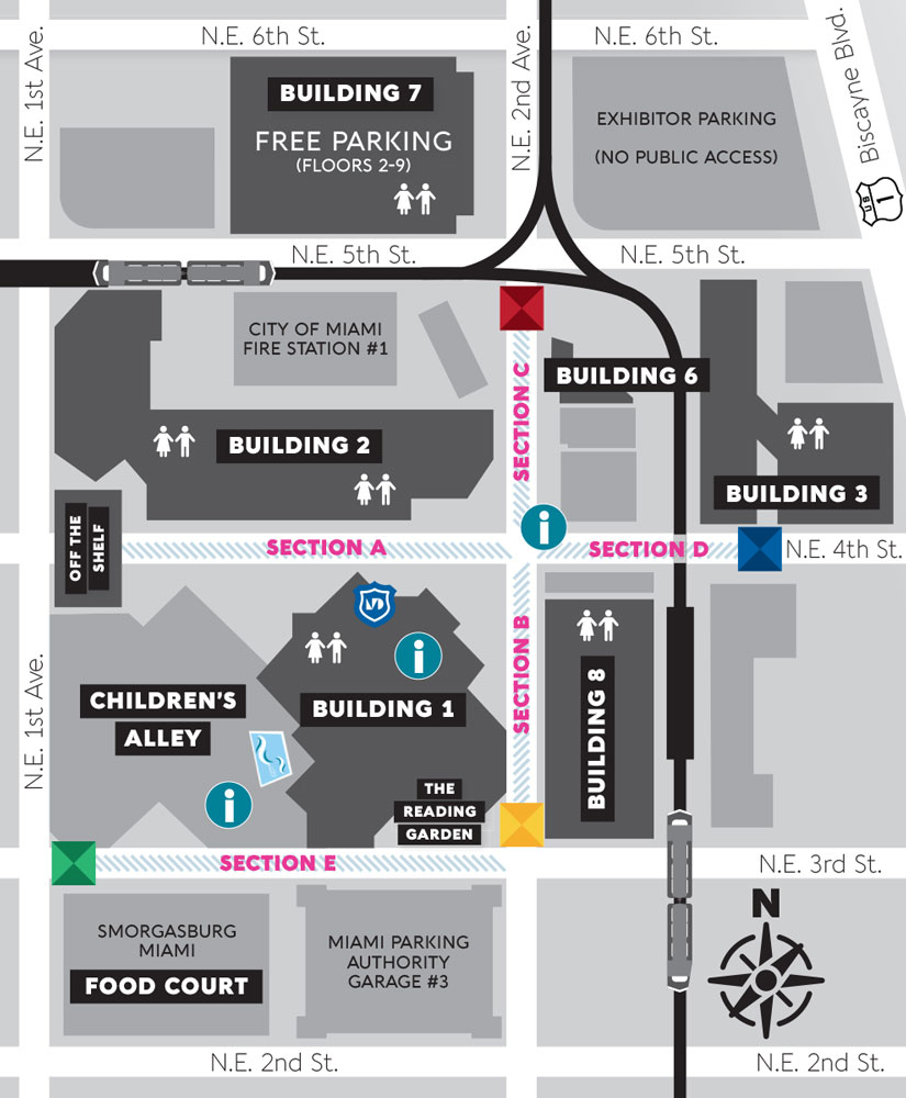 Miami Book Fair closes streets around MDC’s Wolfson campus. If you’re driving use 145 NE Fifth St. to map your route. Please note that there is a one-block walk between the garage and the closest Fair entrance.